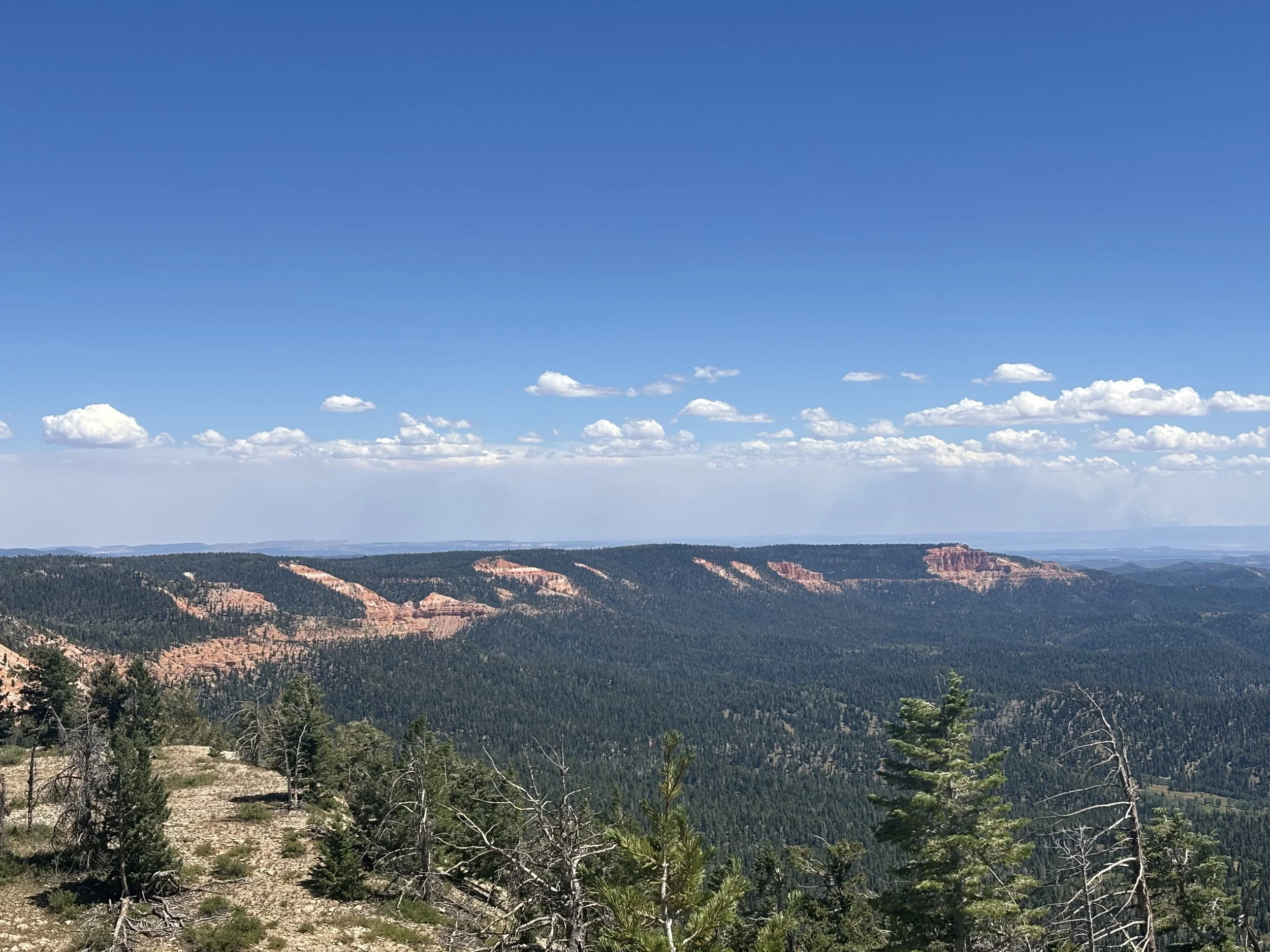 The trail around Navajo Lake is well maintained single track that winds through a large basalt flow and the trees lining the banks of the lake. Navajo lake is a great place to get out of the heat of southern Utah, as it sits at about 9,000’ in elevation up Cedar Canyon. I mostly ran the loop and extended the my route an extra 3 miles into the mountains on the southern edge of the lake. Once on top of the mountain you get to see the pink cliffs and Zion in the distance. Completed July 31, 2025
