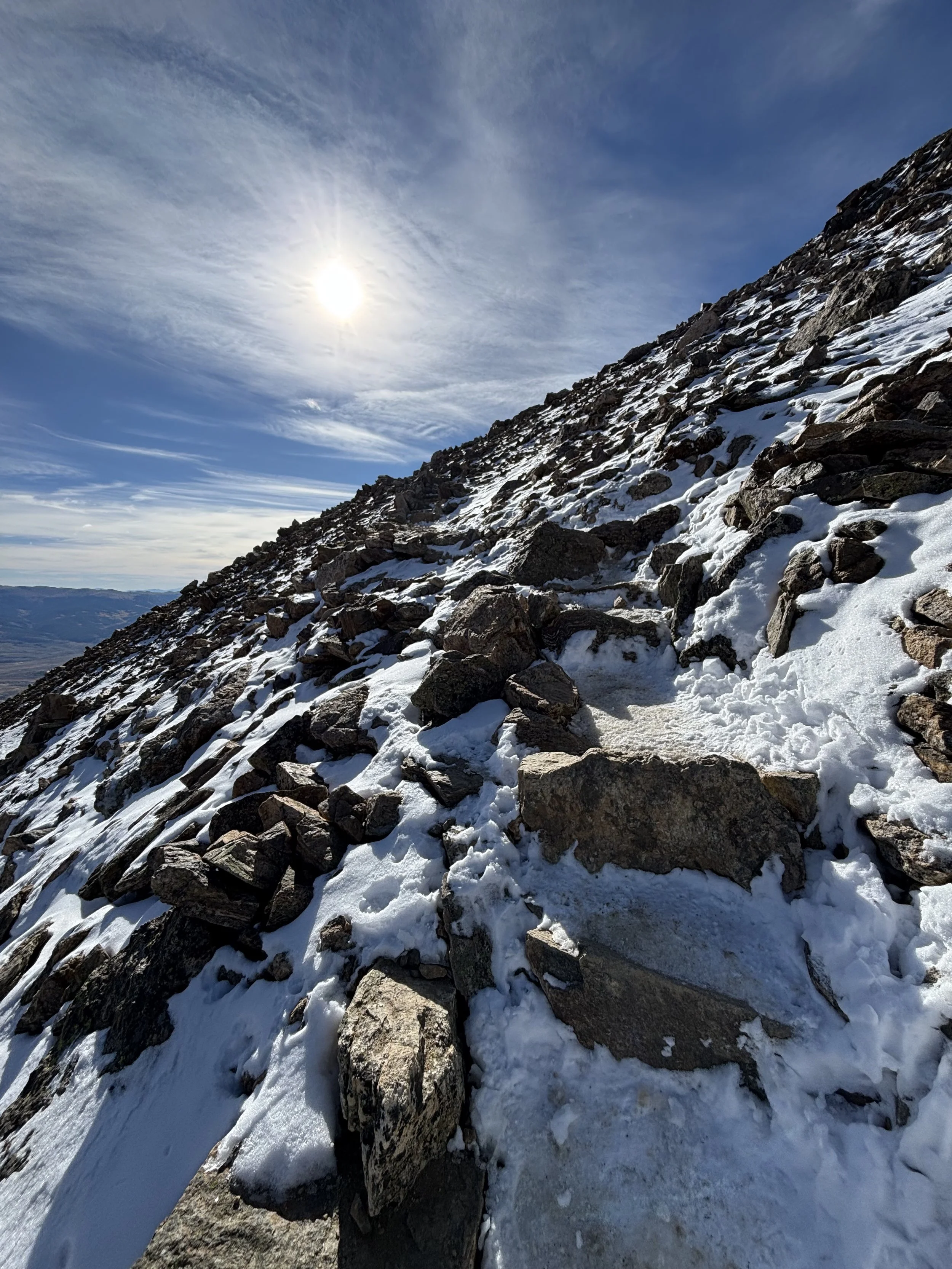 My first 14,000 ft. peak was a success and offered stunning views. The fall leaves were on full display and we battled cold north winds until the trail veered to the south face. From then on the air was calm for the remaining climb to the summit. We had stayed in Keystone Resort the night before, which helped us acclimate. Both my uncle and I felt great and were prepared for the colder temps. The Mt. Elbert trailhead is easily accessible on a dirt road and has a decent sized parking lot. The trail is popular and well maintained. A good choice for anyone looking to do their first 14’er.